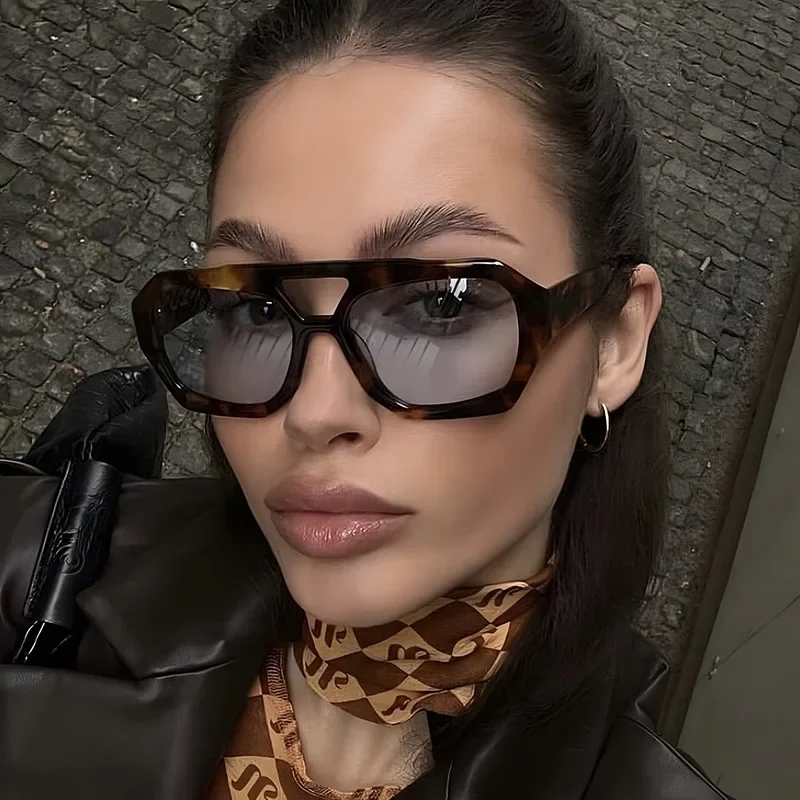 Retro Double Bridges Women's Sunglasses Big Frame Leopard Brown Gradient Eyewear Luxury Designer Sun Glasses Men Shades